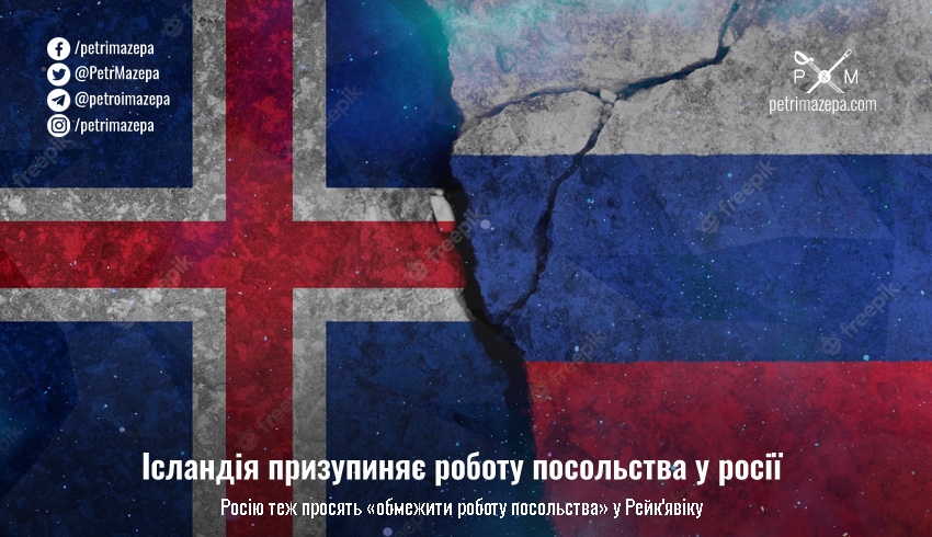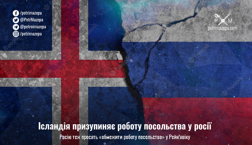 Міністерство закордонних справ Ісландії офіційно анонсувало призупинення роботи свого посольства у Москві. Вони також просять країну-агресора обмежити роботу свого посольства у Рейк’явіку.