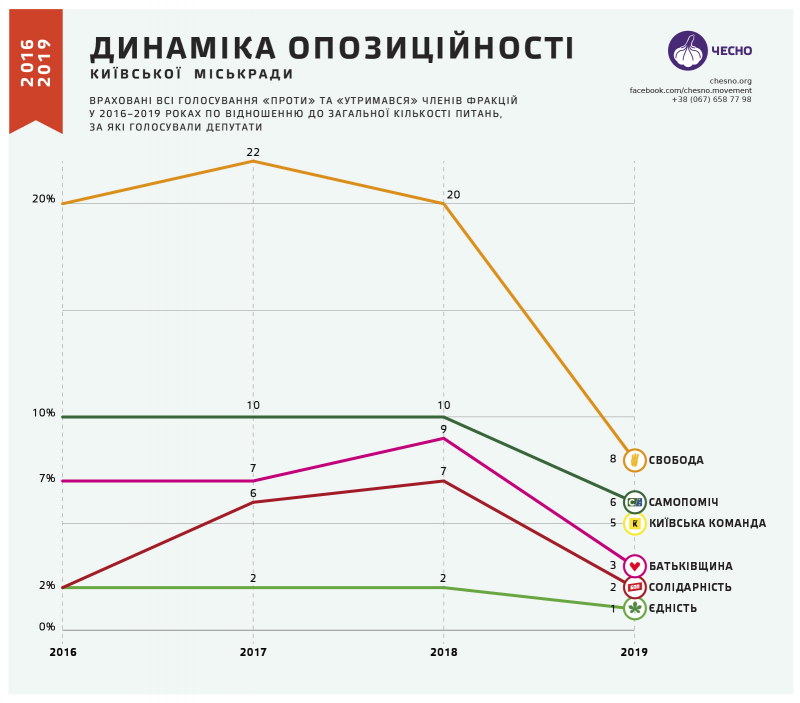 У Київраді 8-го скликання фракція «Єдність», як повідомляв Рух ЧЕСНО раніше, голосує найменш опозиційно та підтримує практично всі рішення.
