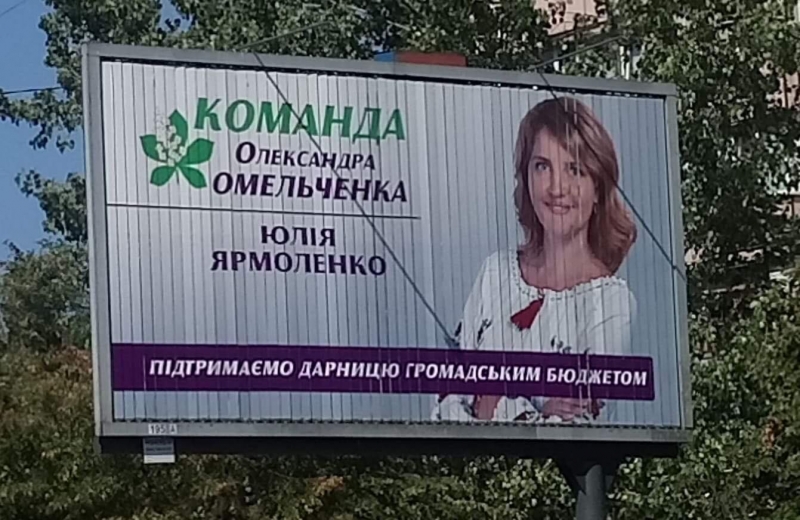 За два місяці до місцевих виборів, у серпні 2020 року, потенційні кандидати від «Єдності» розпочали дочасну агітацію. Рекламні щити зарясніли новими обличчями та вже відомим листом каштана, що є фірмовим знаком партії. Рух ЧЕСНО звернув увагу, що на білбордах відсутня назва «Українська партія «Єдність», а зазначено лише «команда Олександра Омельченка».