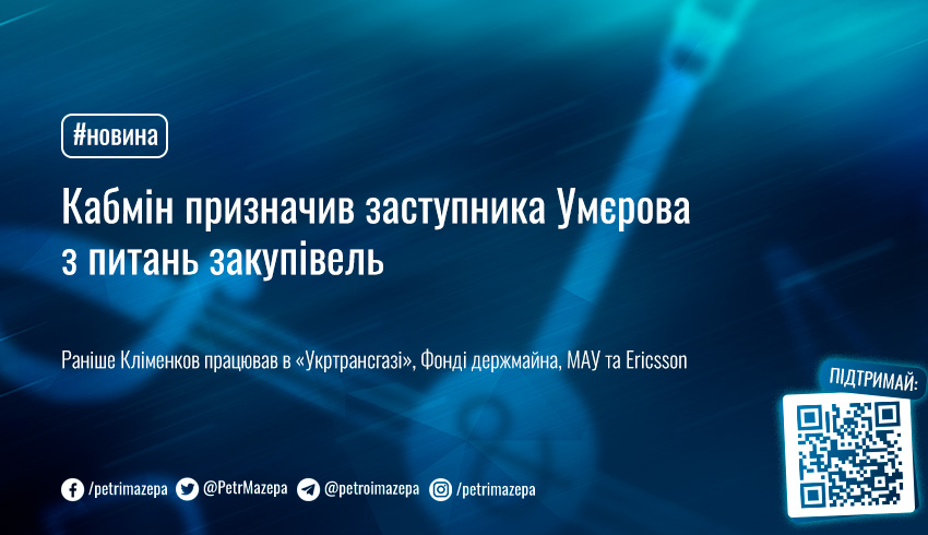 Кабінет міністрів призначив Дмитра Кліменкова заступником міністра оборони Рустема Умєрова з питань закупівель.