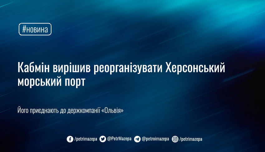 Кабінет міністрів ухвалив рішення про реорганізацію державного підприємства «Херсонський морський торговельний порт» шляхом його приєднання до державного підприємства «Стивідорна компанія "Ольвія"».