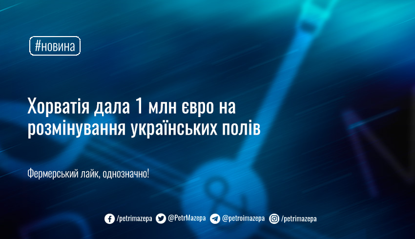 Хорватія вирішила пожертвувати 1 мільйон євро для розмінування сільськогосподарських земель України. Про це повідомляє сайт нашого Міністерства економіки.