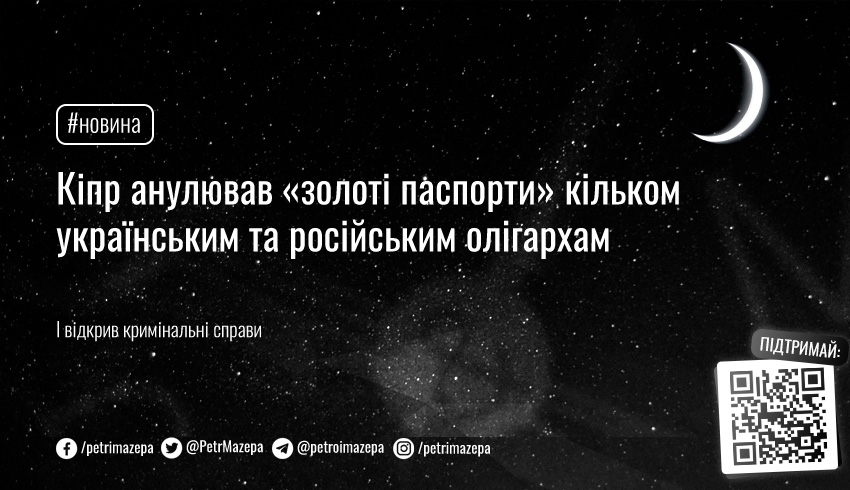 Уряд Кіпру анулював «золоті паспорти» кільком десяткам іноземних інвесторів, зокрема юридичним й аудиторським фірмам, через які видавали документи, а також українським і російським бізнесменам.