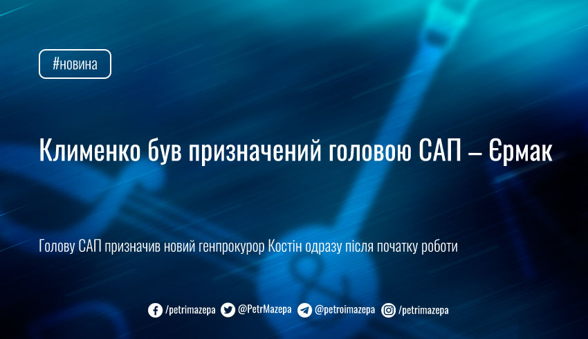 За його словами, Клименка призначив головою САП новий генеральний прокурор Андрій Костін, одразу після свого призначення на посаду. Сам Костін був призначений генеральним прокурором сьогодні, указом президента №538/2022.