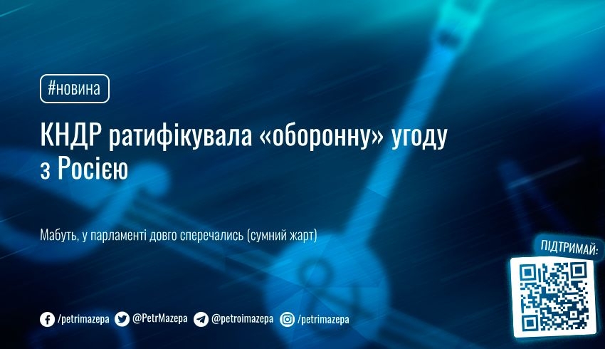 Північна Корея ухвалила рішення про ратифікацію угоди про оборону у співпраці з Російською Федерацією. Цей документ підписали ще у червні цього року.