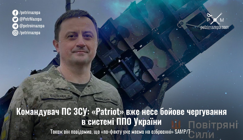 Командувач ПС ЗСУ: «Patriot» вже несе бойове чергування в системі ППО України