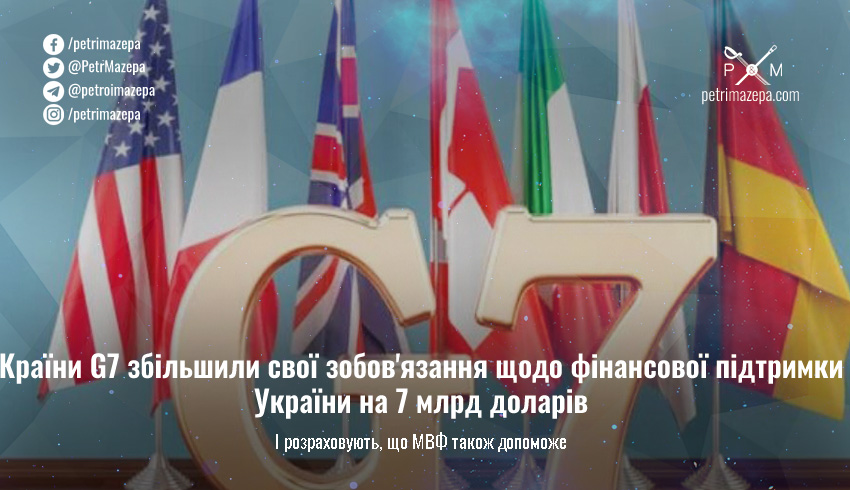 Країни G7 збільшили свої зобов'язання щодо фінансової підтримки України на 7 млрд доларів