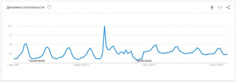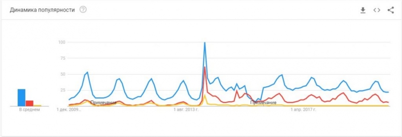 Рік 2014-й став шоковим — відповідно змінився і рівень інтересу: у березні того року півостровом цікавилися вдвічі більше людей, ніж на максимумі будь-якого курортного сезону. Але навіть якщо не враховувати анексії, літній пік у серпні теж нікуди не подівся.