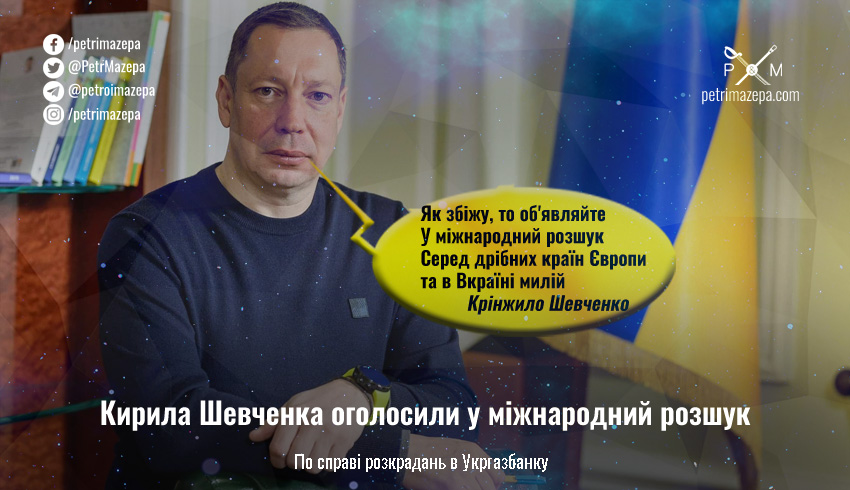 - 24 жовтня НАБУ оголосило у розшук ексголову НБУ Шевченка у справі «Укргазбанку»
