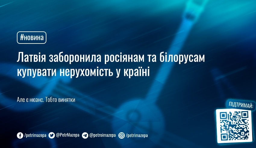 Сейм Латвії ухвалив заборону громадянам Росії й Білорусі купувати нерухомість у країні. На вже куплену до цього моменту нерухомість заборона не поширюється.