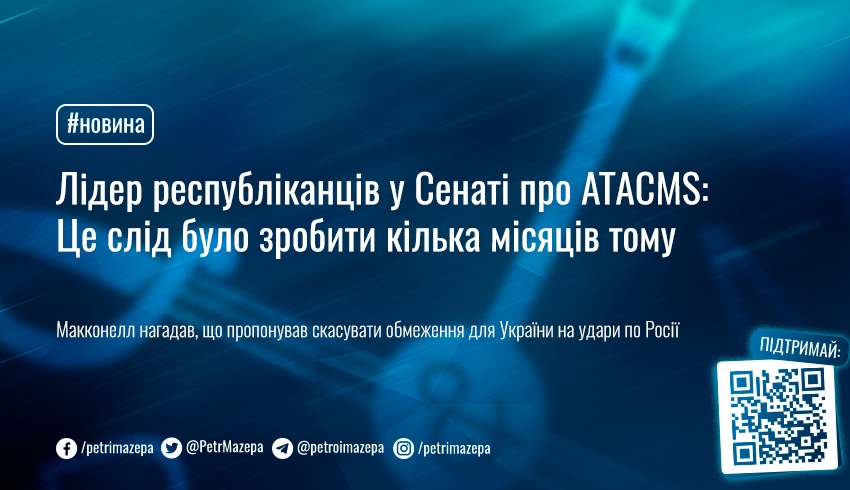 Лідер Республіканської партії в Сенаті США Мітч Макконнелл підтвердив рішення Білого дому скасувати обмеження для України на удари далекобійними ракетами ATACMS по цілях у Росії.