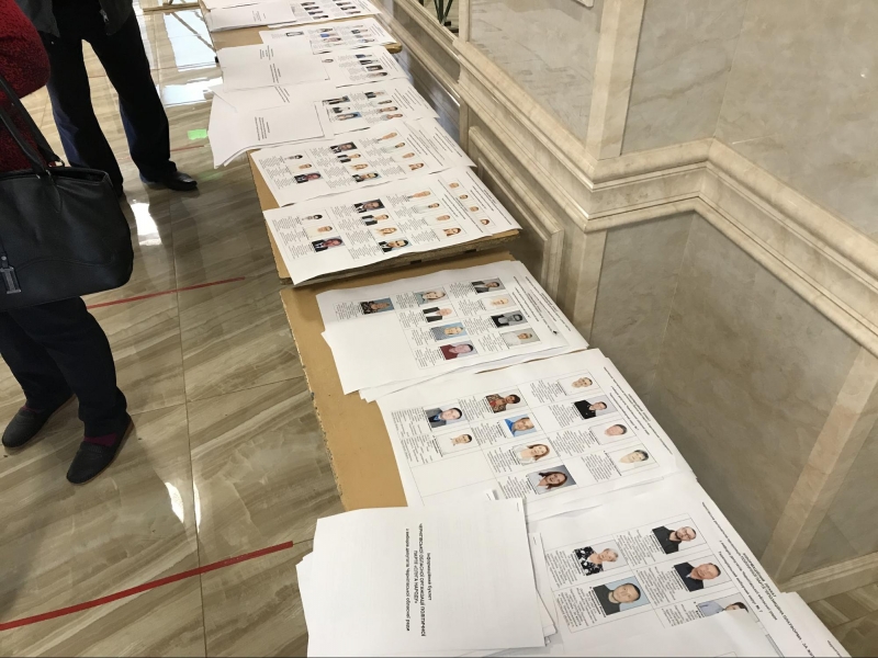 Виходжу в коридор. Тут виборці, котрі чекають своєї черги, роздивляються інформаційні плакати з кандидатами, що лежать на столах, та питають одне в одного, за кого голосувати. Поверхово оглядаючи цю масу інфобюлетенів, не знаходжу інформації про кандидатів у нардепи, бачу лише про місцевих. Однак голова ДВК переконує, що плакати з мажоритарниками там є, просто їх треба пошукати.