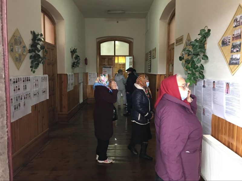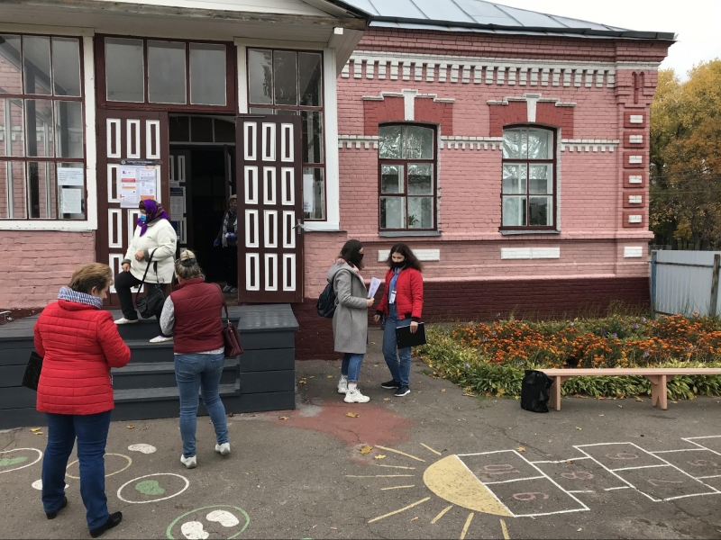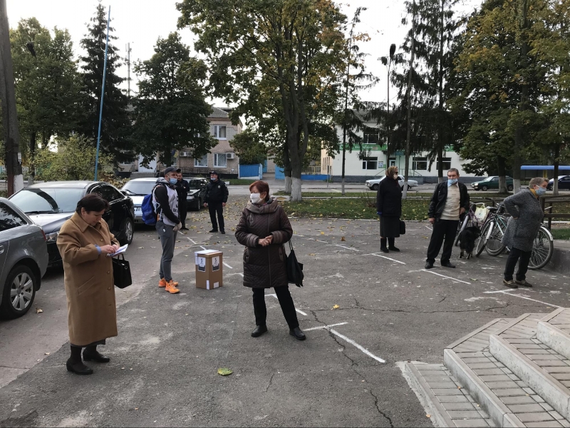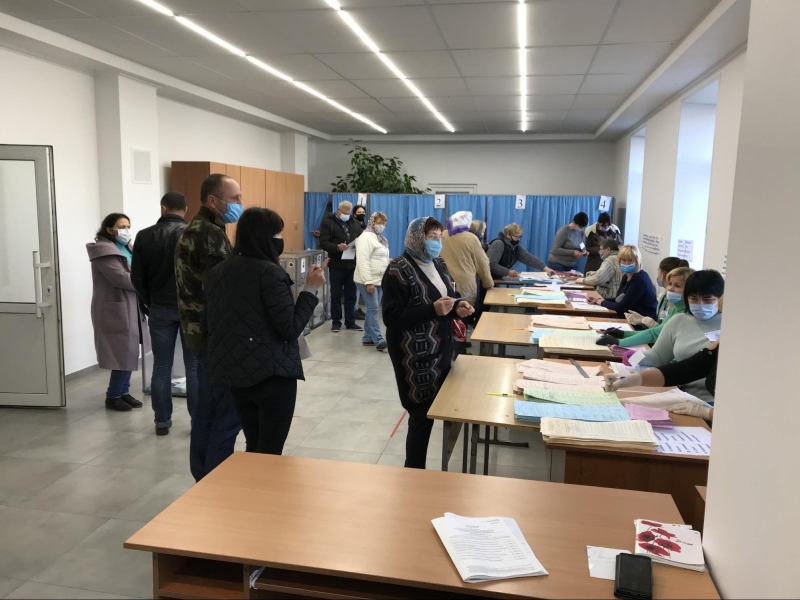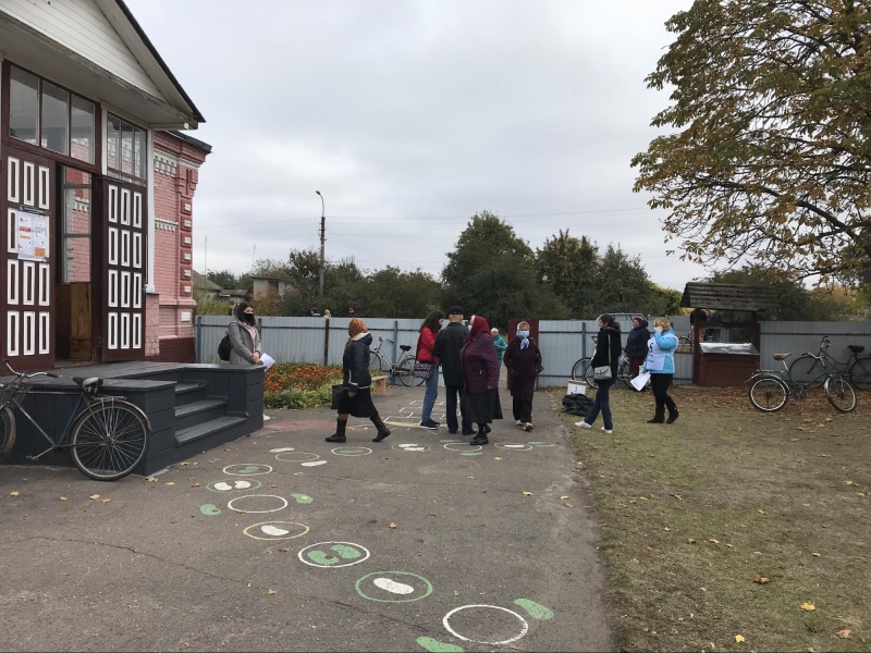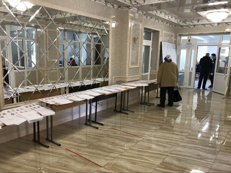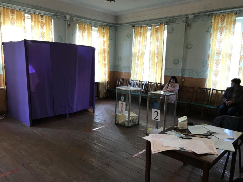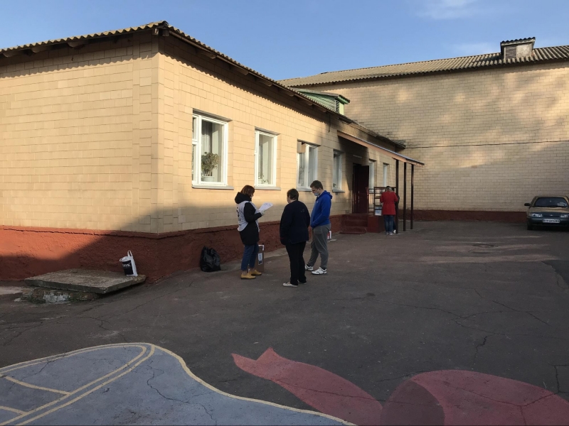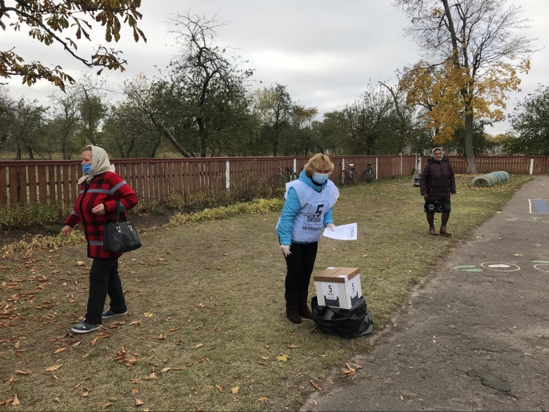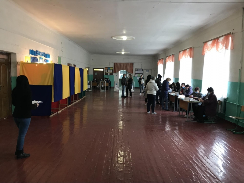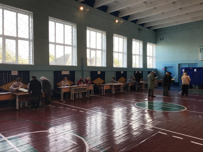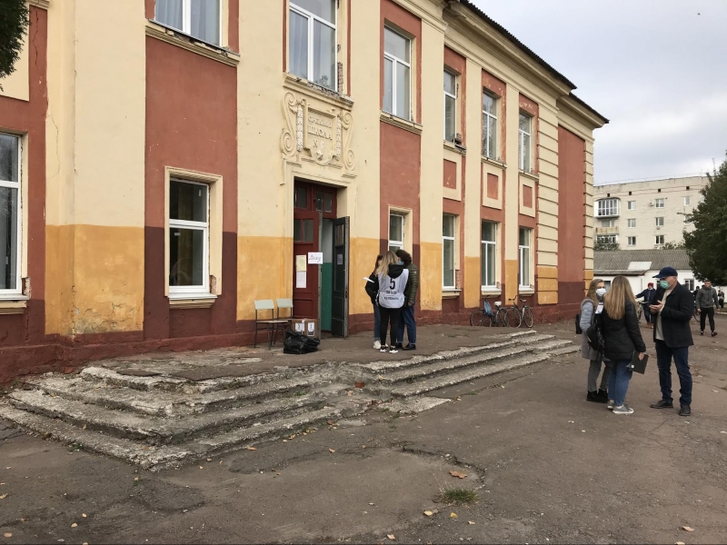 Приміщення для голосування облаштували у шкільному спортзалі. На вході мені міряють температуру та реєструють як представника ЗМІ. Поки я роздивляюся навколо, зчиняється ґвалт: члени комісії кинулися до молодої жінки, котра прилюдно пошматувала видані їй бюлетені. Виборчиня, яка прийшла з матір'ю, заявила, що вирішила не голосувати, а бюлетені знищила, щоб ніхто не проголосував замість неї. Після кількахвилинної суперечки жінок відпустили.