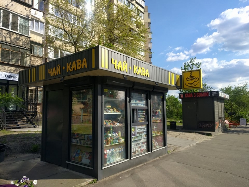 Позняки, спальний район Києва. На кіоску, де продають шоколадки, цигарки та інші дрібниці, зверху великими буквами написано: «Чай, кава». Кіоск працює, але підходиш до віконця і бачиш завішений чорною тканиною кавовий апарат. Напої на час карантину тут не продають.