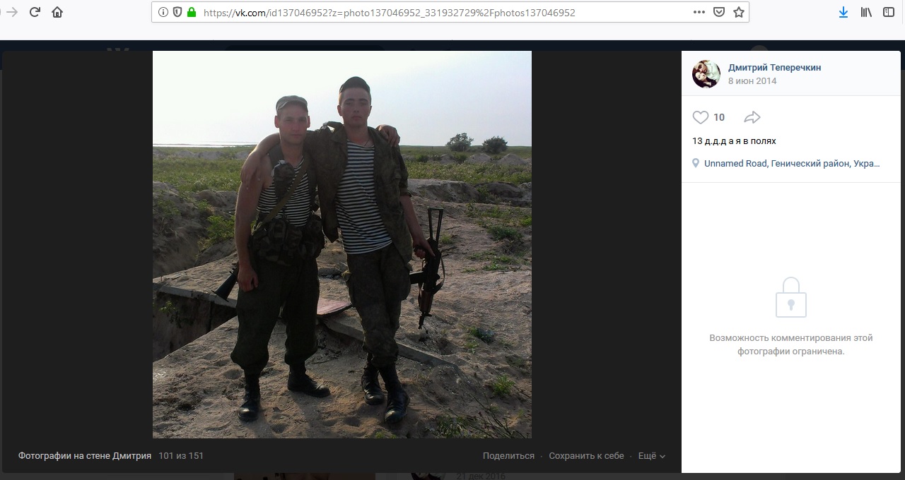 Тепер ми знаємо ім’я російського воєнного злочинця та військову частину, у складі якої він брав участь у війні проти України. У російській соціальній мережі «ВКонтакті» ми знайшли кілька його сторінок.
