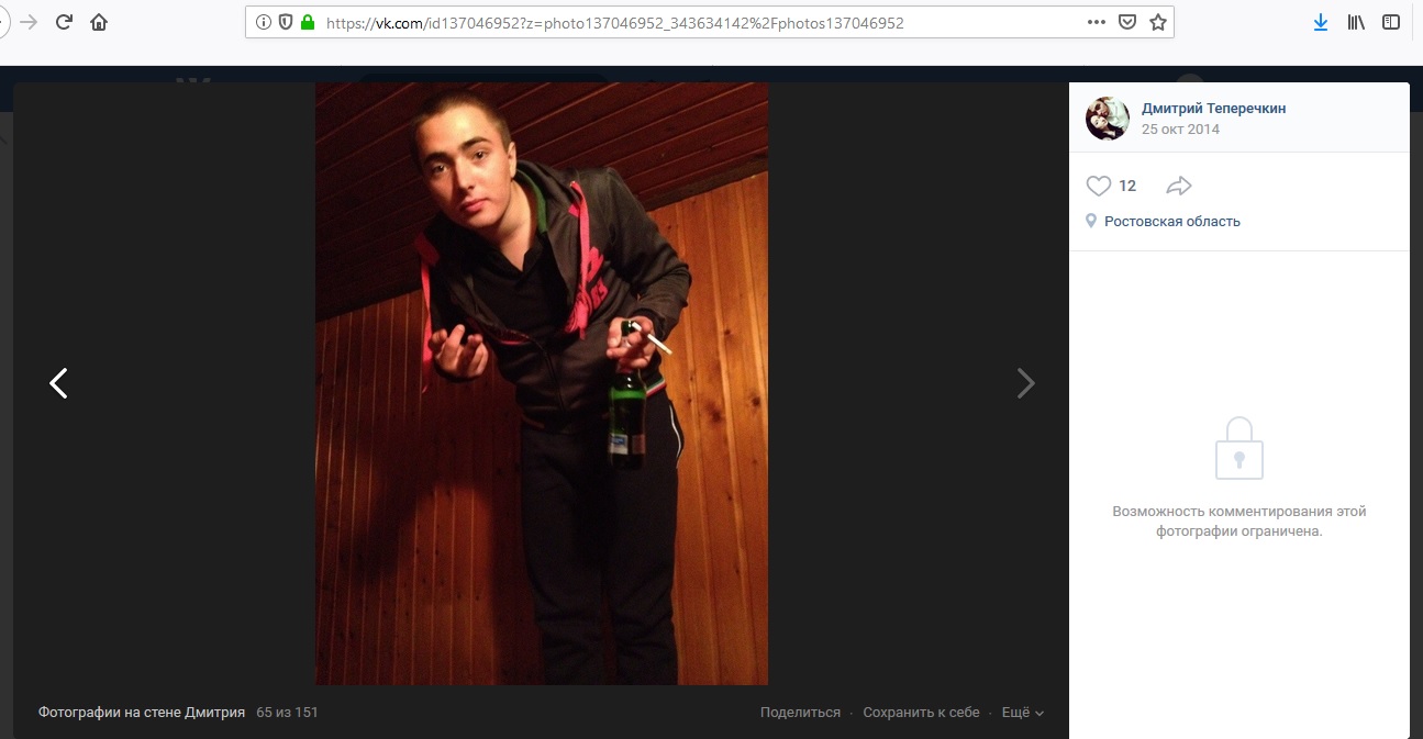 На основі інформації, що вказана в профілях соцмережі, встановлено, що Теперечкін Дмитро Олексійович (рос. – Теперечкин Дмитрий Алексеевич) народився 19 червня 1995 року в м. Біла Калитва Ростовської області РФ. Живе в Ростові-на-Дону.