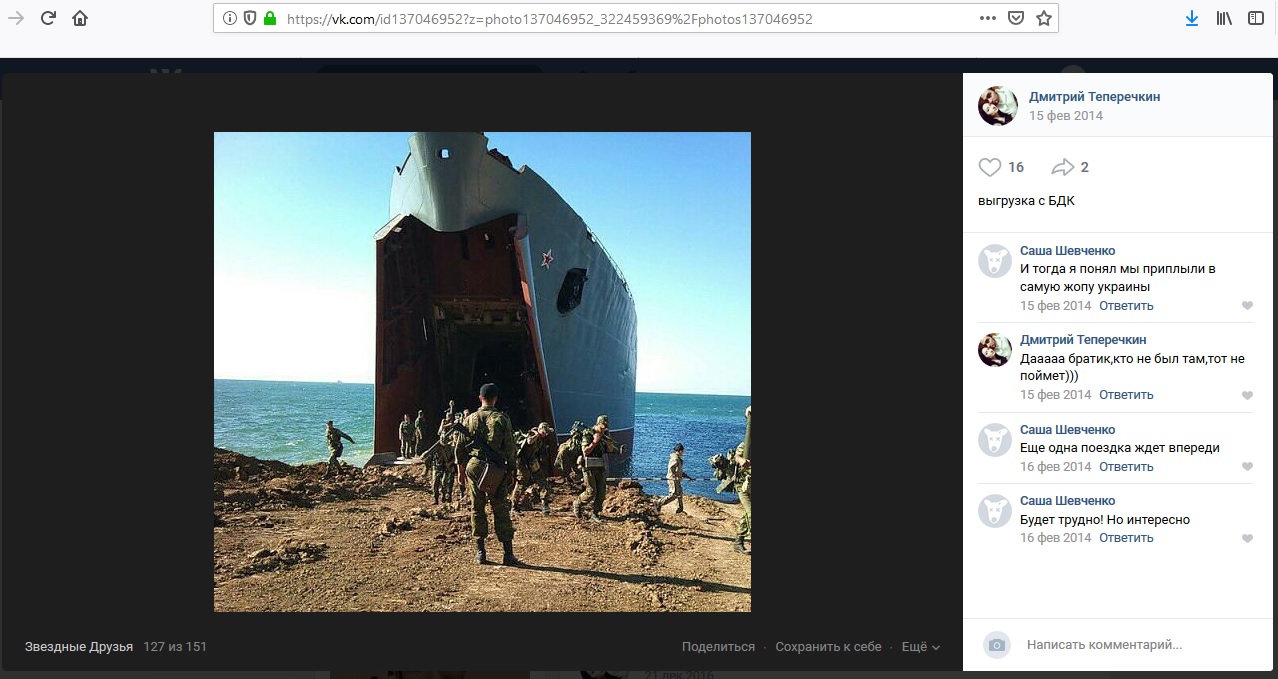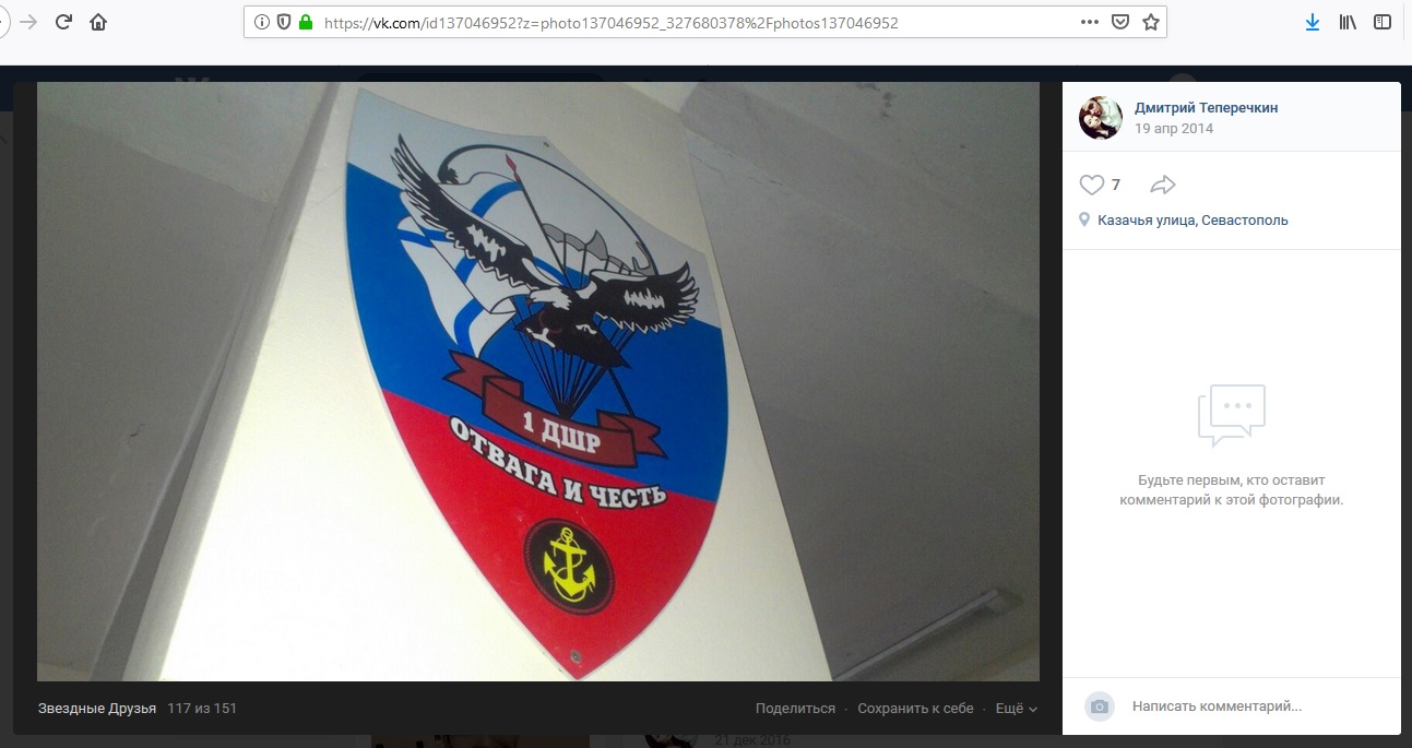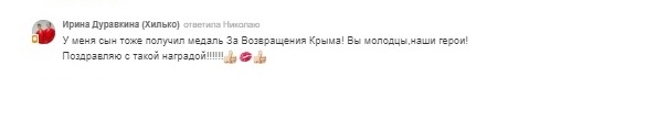 Нещодавно міжнародна розвідувальна спільнота InformNapalm встановила факт участі 108-го десантно-штурмового полку ЗС РФ в операції захоплення Криму. Вивчаючи профіль десантника цього полку М. Довженка, під фотографією з медаллю за окупацію Криму ми натрапили на такий коментар росіянки Ірини Дуравкіної: «У мене син також отримав медаль За Повернення Криму! Ви молодці, наші герої! Поздоровляю з такою нагородою!!!!!!»