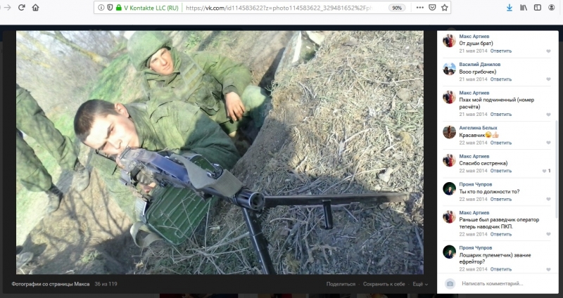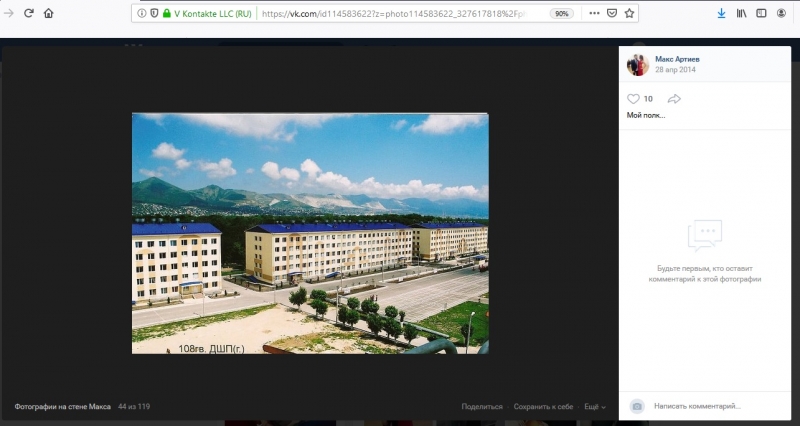 На наступному скріншоті бачимо, що Артієв вказав своє місце служби: внизу на фото напис «108 ДШП (г)» і коментар до фото «мій полк…».