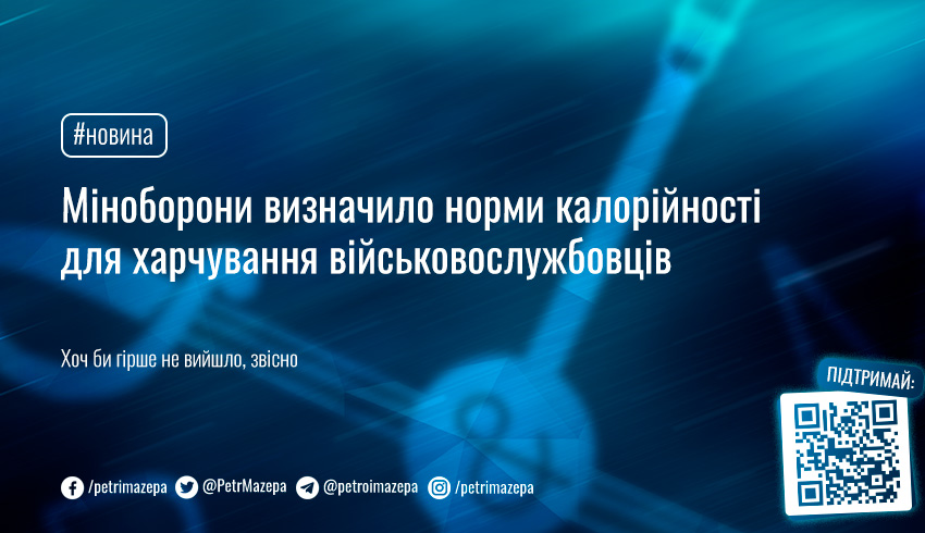 Міністерство оборони України визначило норми калорійності для ключових продуктів, що постачаються на потреби Збройних Сил України. Це рішення стало наслідком перевірок військових частин, під час яких виявили недоліки, зокрема, в умовах постачання продуктів із недостатньою калорійністю.