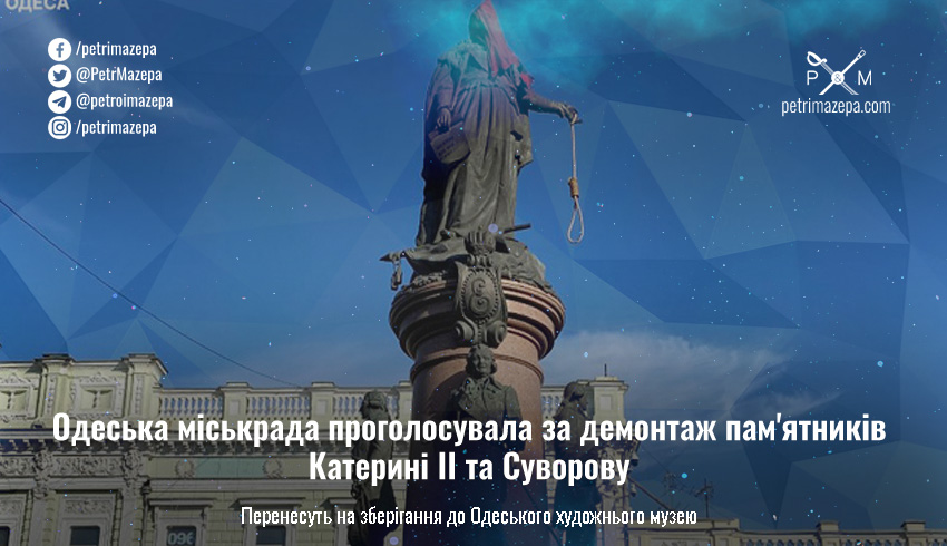 Міськрада Одеси проголосувала за демонтаж пам'ятників Катерині ІІ та Олександру Суворову.