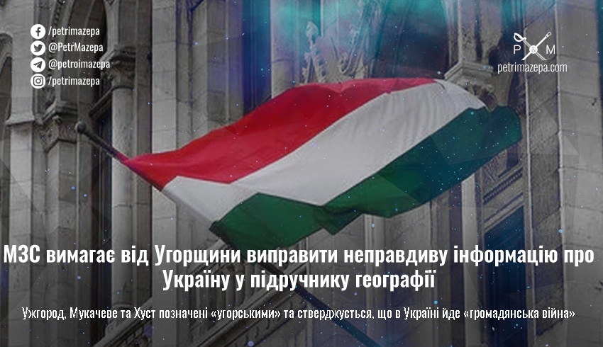 Міністерство закордонних справ вважає неприйнятним включення до угорського підручника неправдивих даних про Україну та вимагає його якнайшвидшого виправлення.