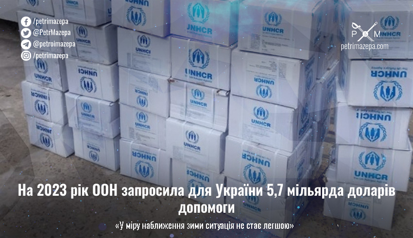 Координатор надзвичайної допомоги ООН Мартін Гріффітс повідомив, що допомогу ООН вже отримали 13,6 мільйона потерпілих від війни українців. А на 2023 рік для України запросили загалом 5,7 мільярда доларів.