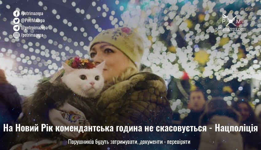 У новорічну ніч комендантська година в Україні не буде скасована, поліція буде перевіряти документи та затримувати порушників.