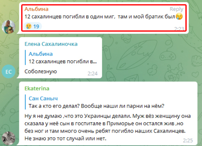 24 липня голова Луганської ОВА Сергій Гайдай розповів, що під Лисичанськом були «демілітаризовані» рашисти із Сахаліну. У місцевих пабликах цієї частини країни-агресора українським новинам не вірили… Поки до чату не увійшли родичі знищених ОМОНівців, а один із тих, хто вижив, не поділився відео.
