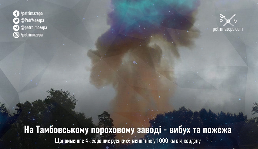 Російські ЗМІ повідомляють про вибух та пожежу на Тамбовському пороховому заводі — щонайменше чотири особи загинули.