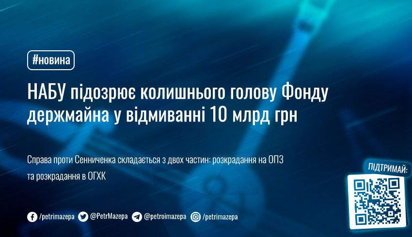 НАБУ заявило, что справа проти Сенниченка складається з двох частин: розкрадання на Одеському припортовому заводі та розкрадання в «Об’єднаній гірничо-хімічній компанії».