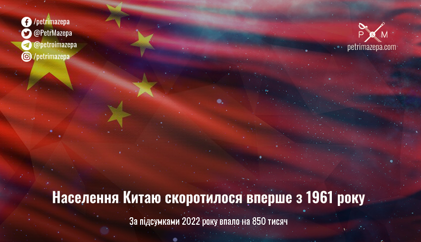 За підсумками 2022 року населення Китаю становило 1,41175 мільярда, що на 850 тисяч менше, ніж роком раніше, повідомило Національне бюро статистики Китаю. Влада країни зазначає, що населення Китаю досягло піку набагато раніше, ніж прогнозували експерти, передає The Guardian.