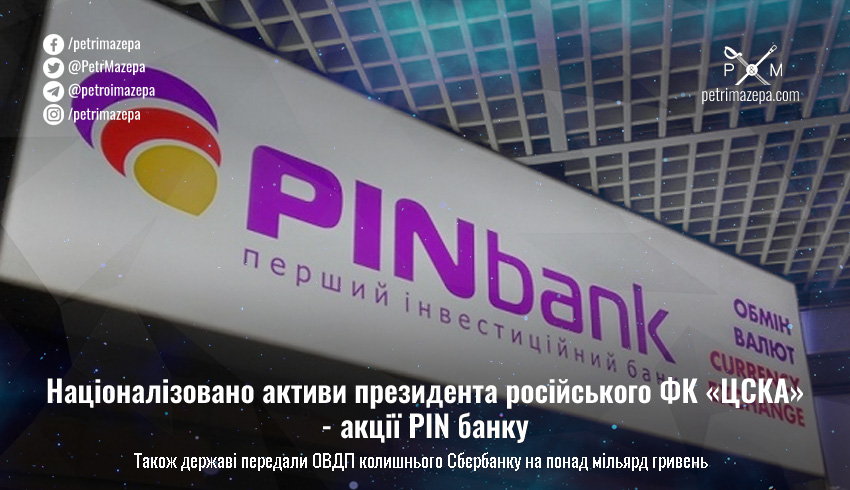 Що стосується PIN-банку, акції якого належали громадянину РФ президенту російського футбольного клубу «ЦСКА» Євгенію Гінеру, то рішення було прийнято по справі, підставою для якої стали матеріали кримінального провадження за фактом пособництва державі-агресору (ч. 1 ст. 111-2 КК України), повідомляє Офіс Генерального прокурора.