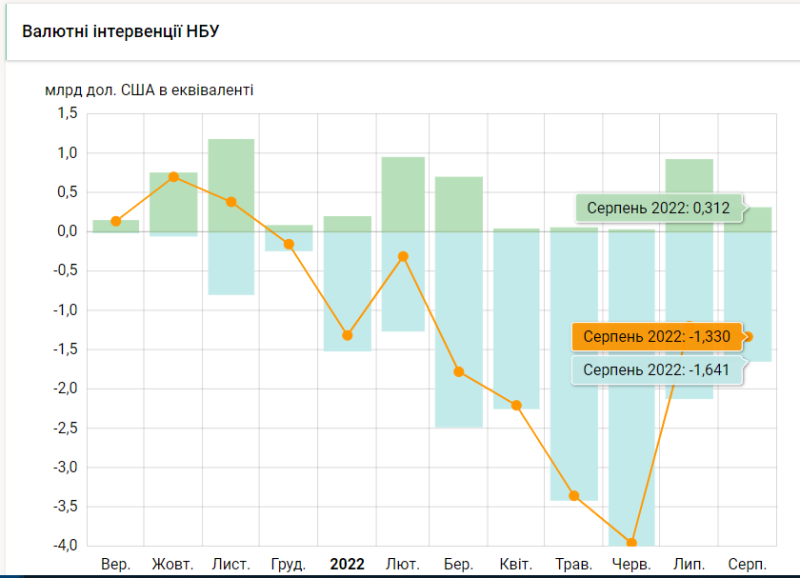 За серпень Національний банк України (НБУ) купив на міжбанківському валютному ринку 311,7 млн доларів та продав 1 млрд 641,4 млн доларів.