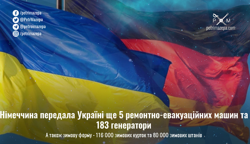 У повідомленні на сайті уряду Німеччини зазначається, що країна передала Україні: