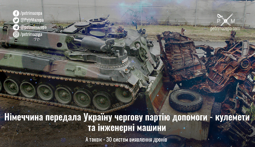 - 3 інженерні броньовані машини Pionierpanzer 2 Dachs («Борсук»). Вони зроблені на базі німецького танка Leopard 1, додає Liga.net. Передаються вперше.