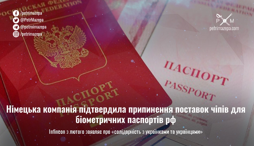 Німецька компанія Infineon підтвердила зупинку постачання до рф чипів для біометричних паспортів. Компанія припинила постачати чіпи до росії в лютому.