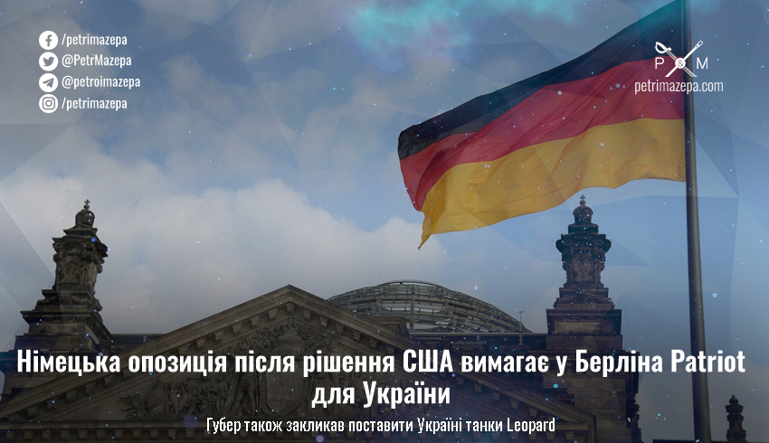 Після оголошення США про постачання Україні ЗРК Patriot генеральний секретар опозиційного Християнсько-соціального союзу (ХСС) закликав уряд Німеччини також надати Києву подібні системи озброєння.