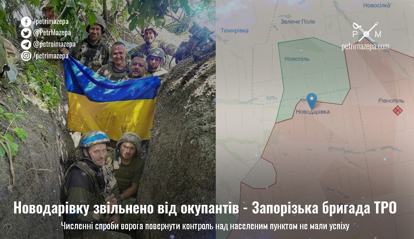 Запорізька окрема бригада ТРО повідомила, що звільнила від окупантів село Новодарівка, й попри численні спроби ворог не зміг повернути під свій контроль населений пункт.
