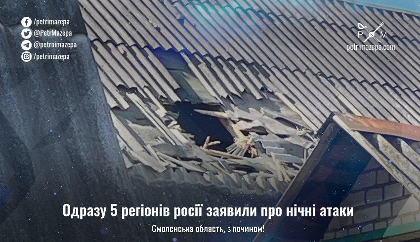 Губернатори одразу п'яти російських регіонів заявили про нічні атаки — це Бєлгородська, Брянська, Курська, Калузька та навіть, уперше, Смоленська область.