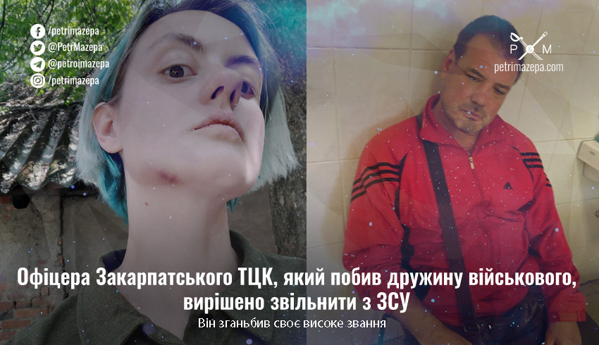 Офіцера Закарпатського ТЦК, який побив дружину військового, вирішено звільнити з ЗСУ
