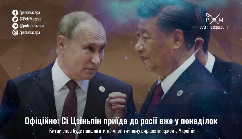 «На запрошення президента російської федерації в.в.путіна президент Сі Цзіньпін з 20 по 22 березня відвідає росію з державним візитом», — повідомила спікер МЗС Китаю Хуа Чуньін.