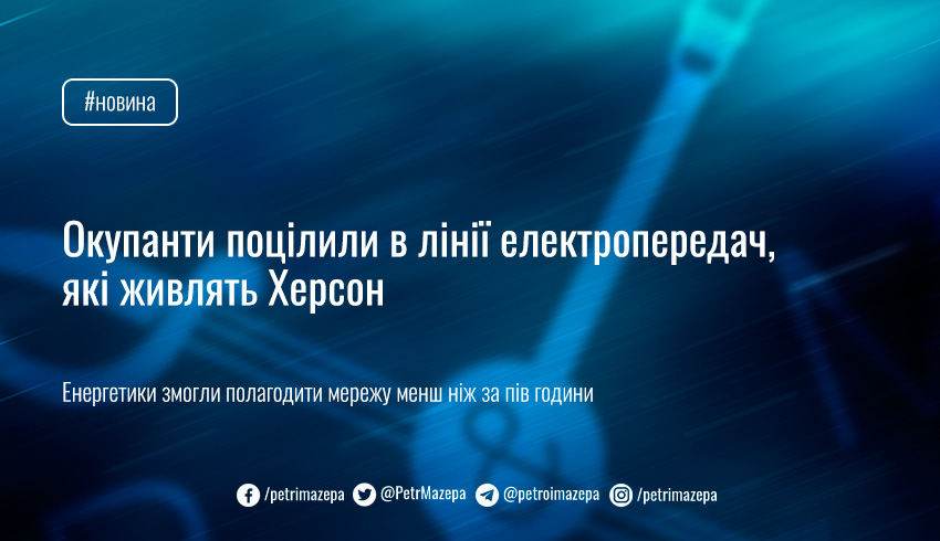 Російські загарбники вдарили по лініях електропередач, які живлять Херсон, енергетики змогли полагодити мережу менш ніж за півгодини.