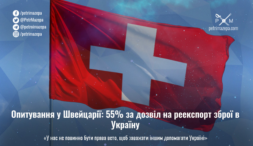 Опитування у Швейцарії: 55% за дозвіл на реекспорт зброї в Україну