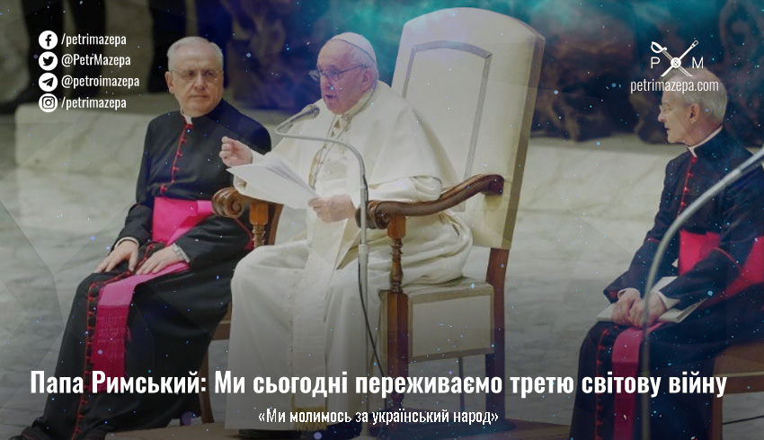 Папа Римський Франциск під час загальної аудієнції паломників з Польщі розповів, що з його точки зору світ наразі вже переживає третю світову війну, та закликав молитися за український народ.