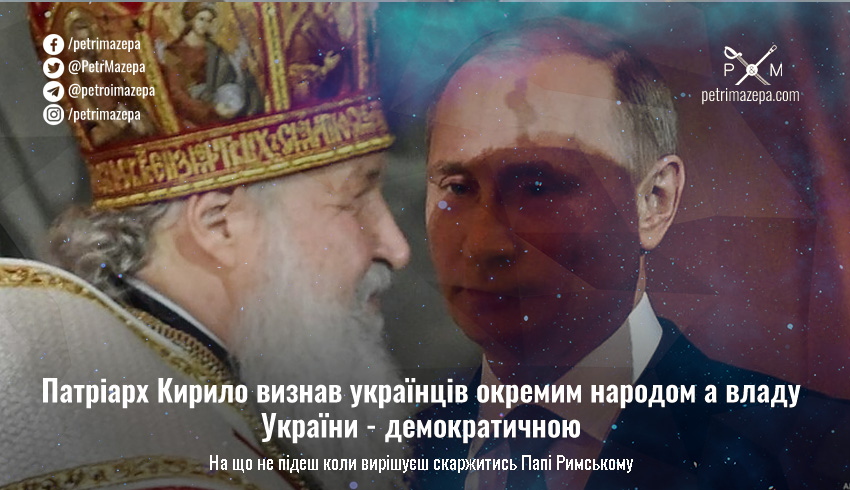 Кирило визнав існування окремого українського народу, законної держави України, яка декларує «відданість демократичним нормам, європейському шляху розвитку, дотримання прав та свобод людини». А змусила це визнати «демократична влада України», яка чомусь не рада російській церкві в Україні.