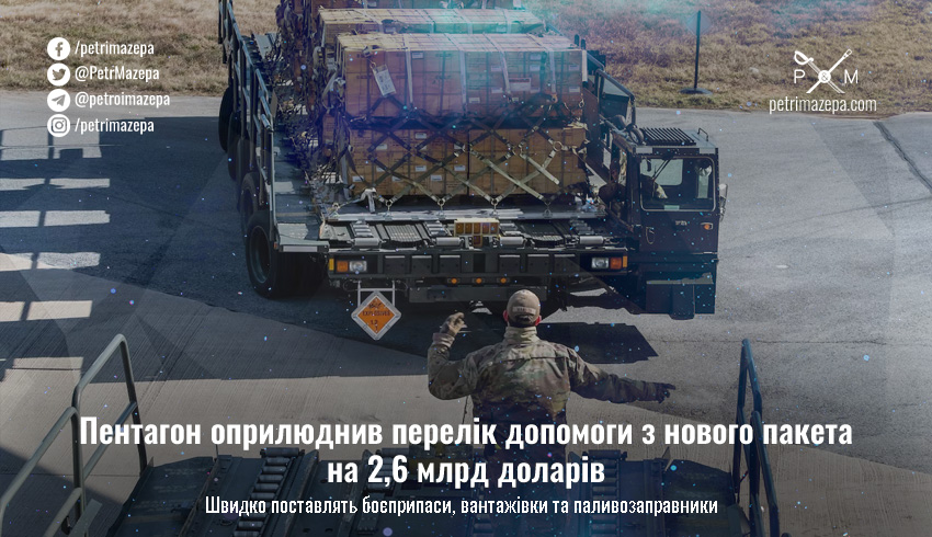 Пентагон оприлюднив перелік допомоги з нового пакета на 2,6 млрд доларів