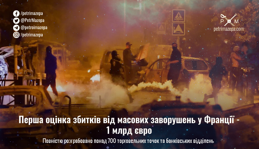 Перша оцінка збитків від масових заворушень у Франції - 1 млрд євро