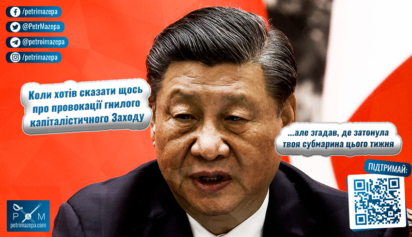 Ймовірно, реакції КНР ми можемо і не дочекатись. Все ж таки не надто зручно називати чиїсь навчання провокацією, коли твоя субмарина цього тижня чомусь раптово доплавалась біля Тайваня та пішла на дно вже назавжди. Збіг?