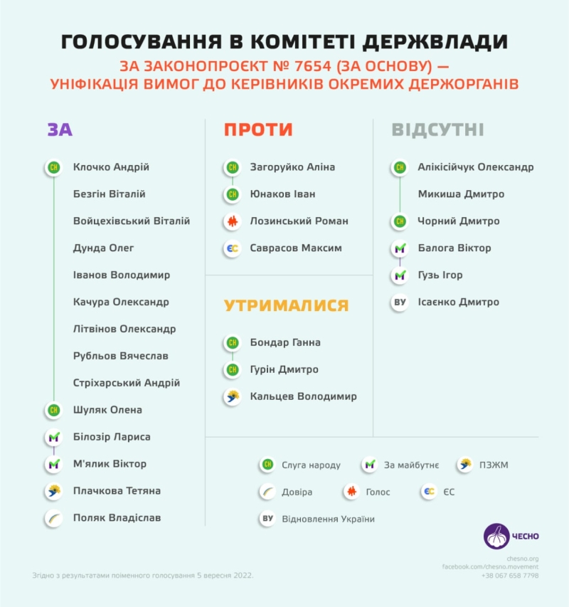 Його підтримали мінімально необхідні 14 із 27 депутатів комітету Ради. При цьому під час засідання двоє народних депутатів (зокрема Владіслав Поляк, якого судять за кнопкодавство), сказали, що одразу підтримують порядок денний і питання у порядку денному, бо в них нібито неякісний інтернет-зв’язок, пише Рух «Чесно». Підтримали цей законопроєкт «слуги народу» та представники фракцій «За Майбутнє», «Довіра» й «Платформа за життя і мир» (екс-ОПЗЖ).