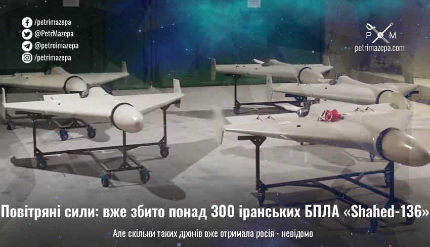 Сьогодні спікер командування Повітряних сил ЗСУ Юрій Ігнат розповів, що ЗСУ збили вже понад 300 іранських дронів-камікадзе «Shahed-136». Також він нагадав, що сьогодні вночі не було атак із застосуванням цих дронів.